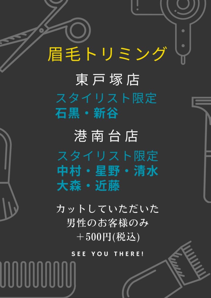 【イッツ!東戸塚店、港南台店 眉毛トリミング】