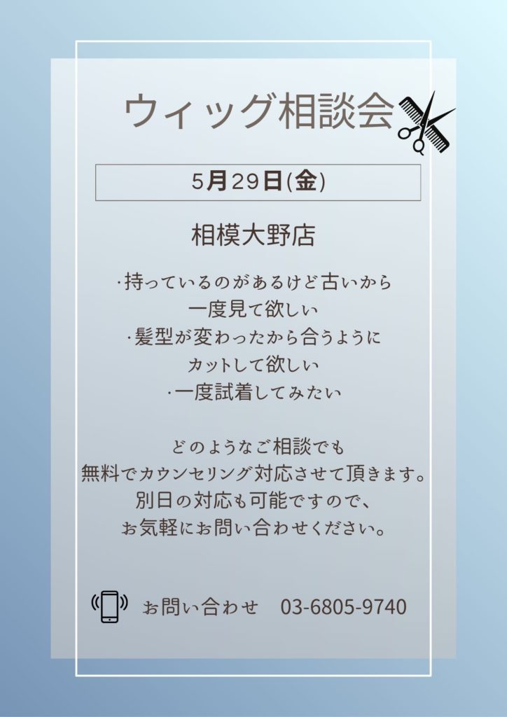 5月29(金)相模大野店【ウィッグ相談会】